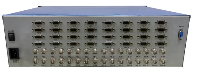 This 50H is a Hybrid matrix switcher, it is furnished a 3UR chassis for 19inch rack mount, could have maximum 16ch VGA input, 8ch BNC input and 16ch VGA output,8ch bnc output.